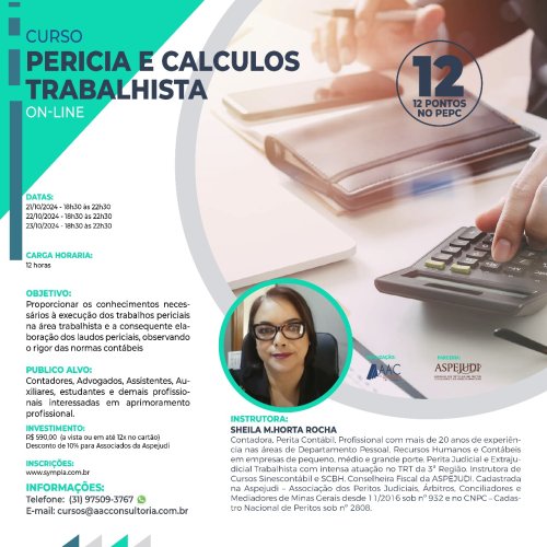 Curso de Perícia e Cálculos Trabalhistas Transforme seu conhecimento em oportunidades! |