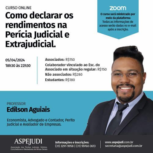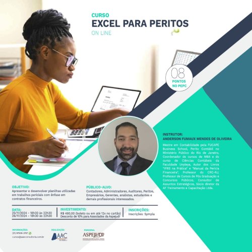 CURSO PERÍCIA FINANCEIRA - CASOS PRÁTICOS A Aspejudi promoveu do dia 25 ao dia 27 de outubro de 2021 (...) |